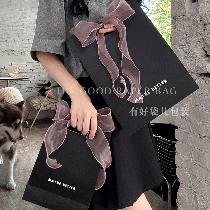 简约黑色礼品袋手提袋服装店袋子感小众伴手礼包装购物袋