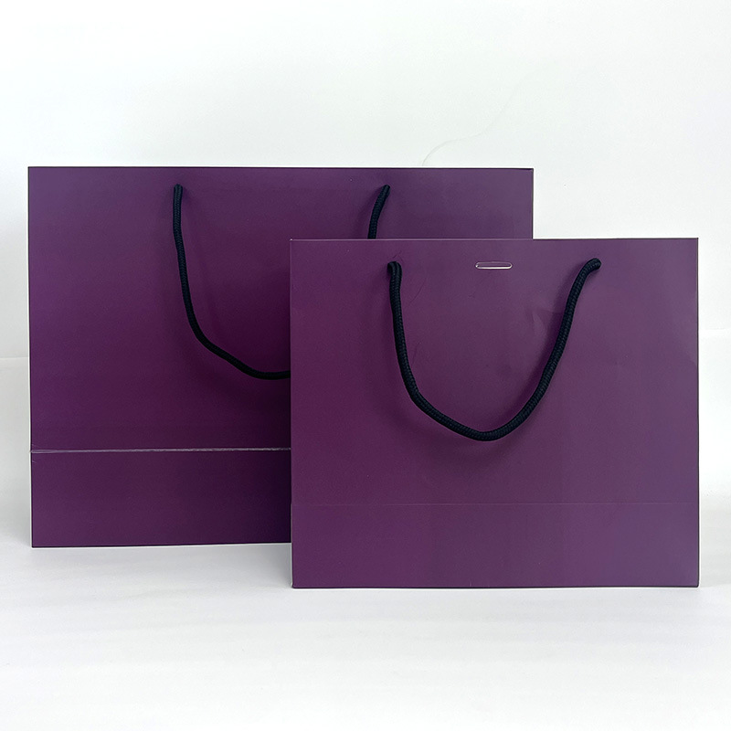 衣料品店厚手手提げ袋印刷ロゴ高級純色紫紙袋ギフトバッグ化粧品レジ袋