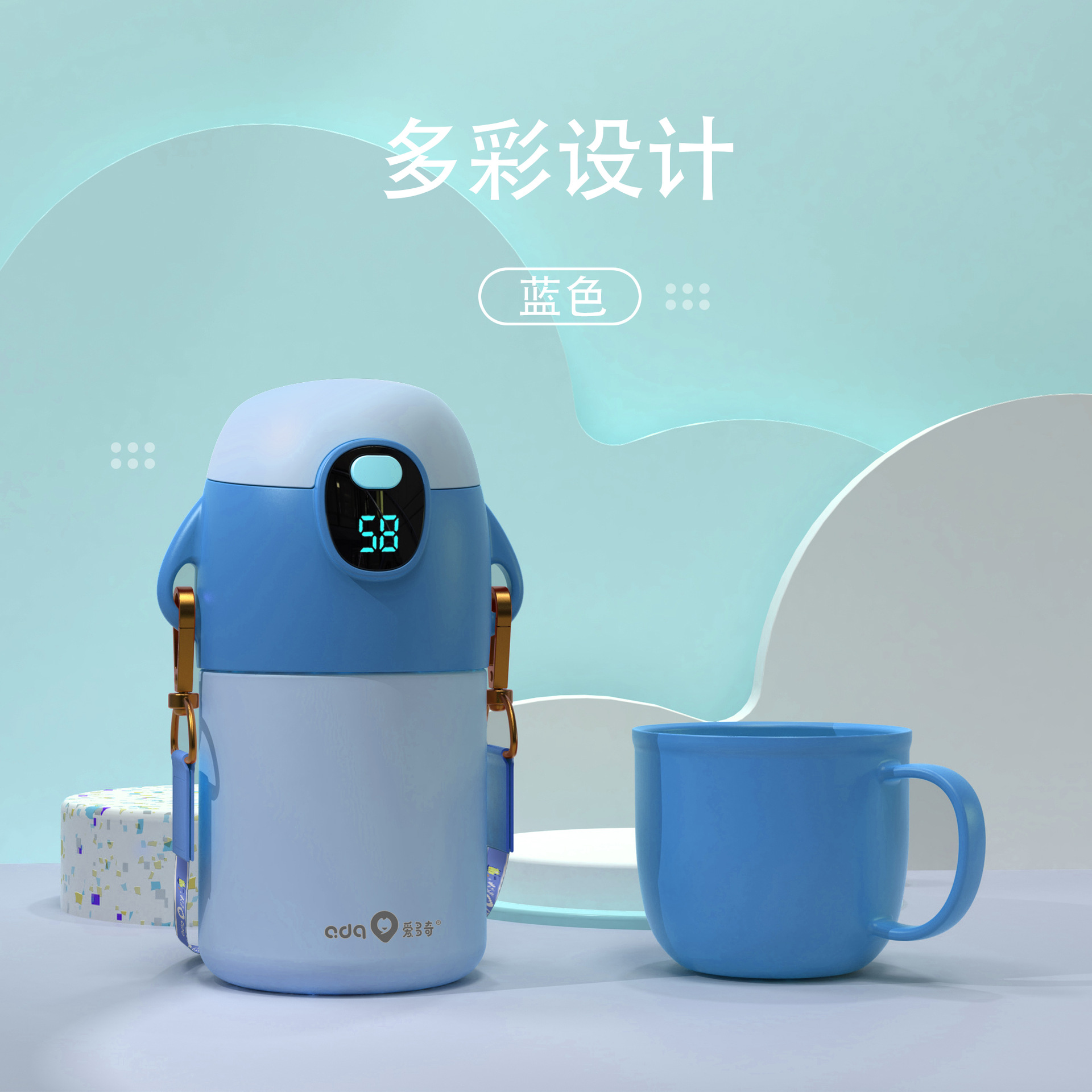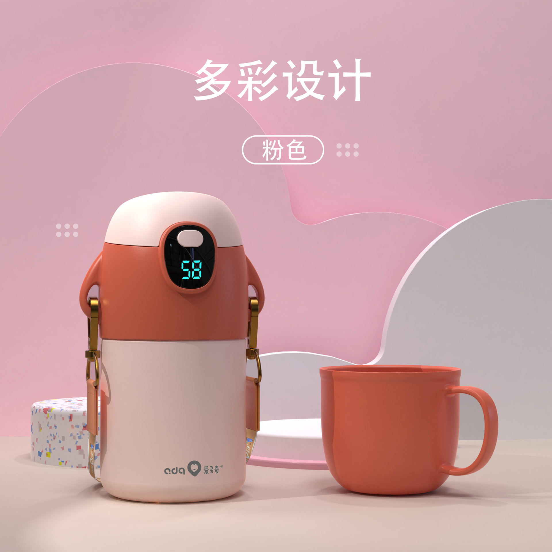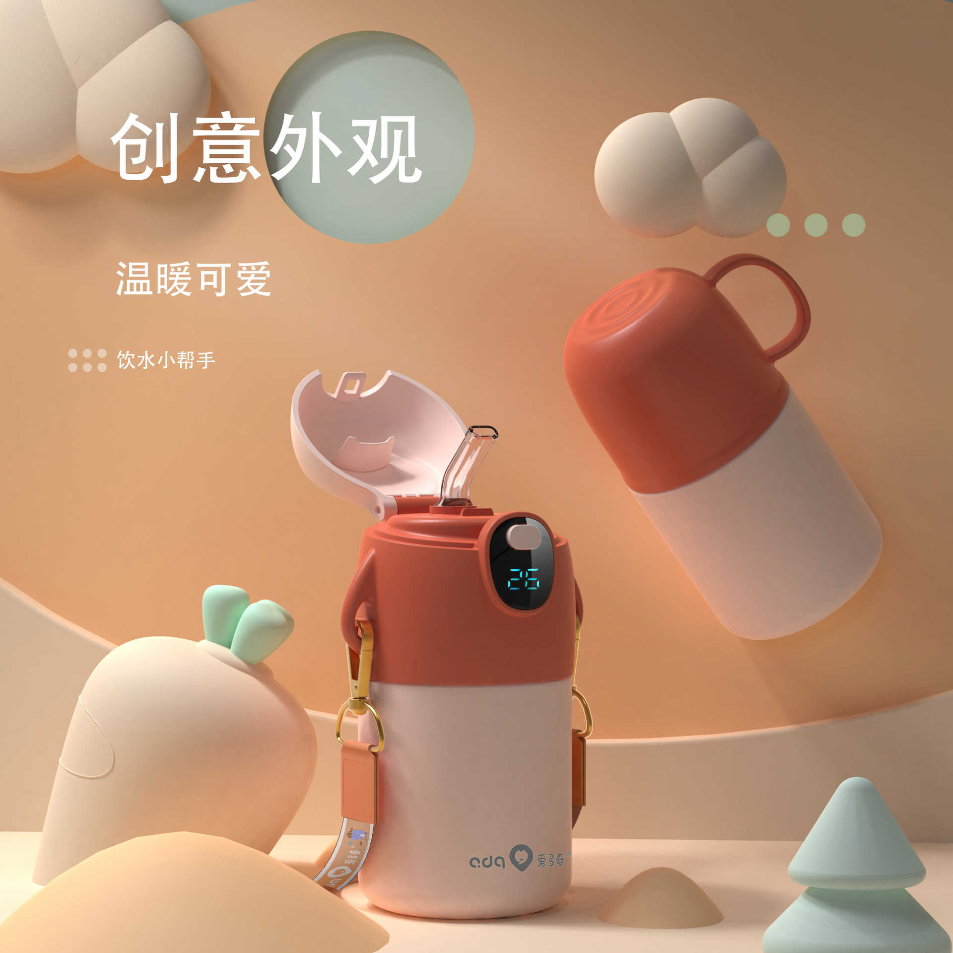 愛多奇児童保温カップ316ステンレス知能温度表示ストローカップ大宝大容量カップ