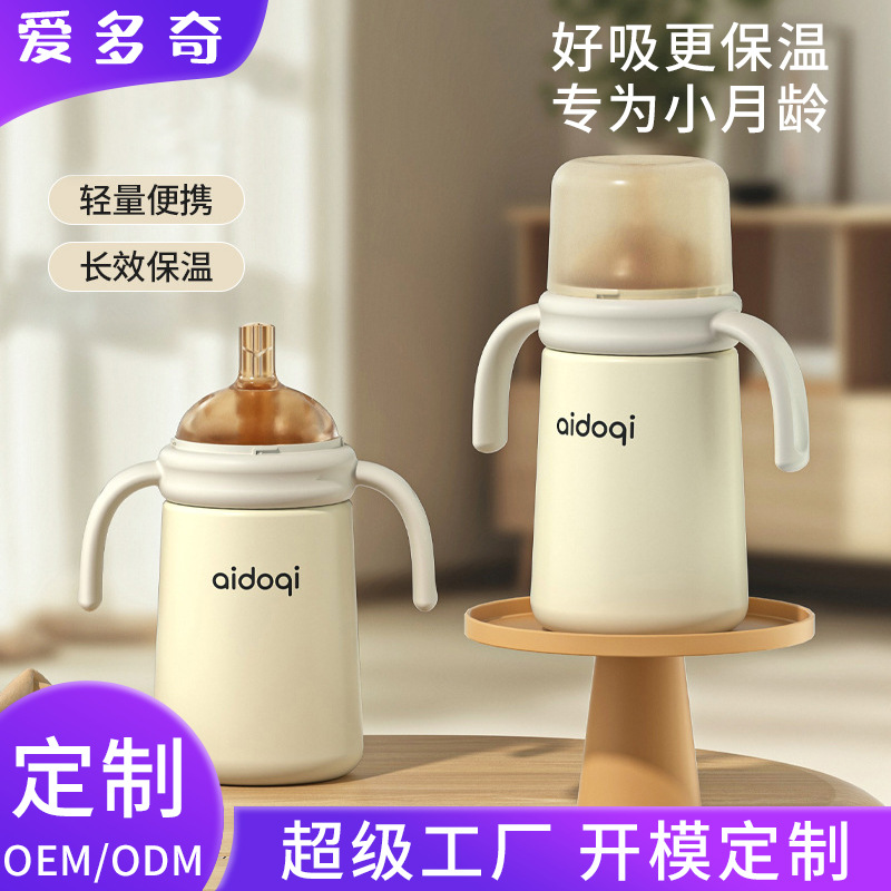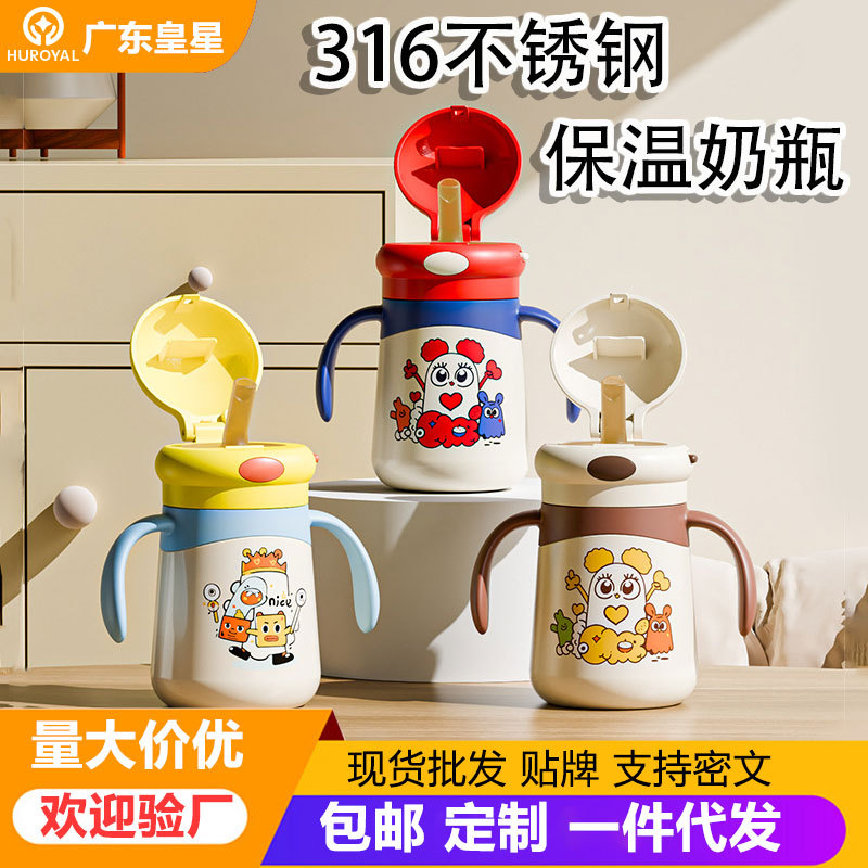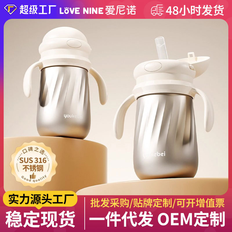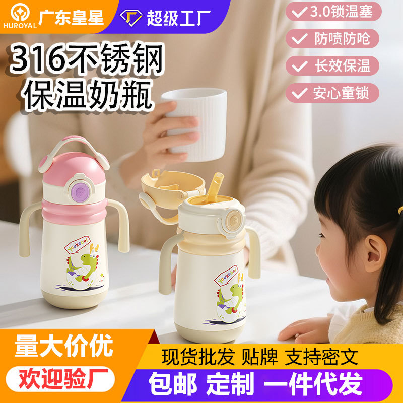 316 不锈钢恒温防漏吸管学饮杯大宝宝保温奶瓶婴幼儿喝水杯批发