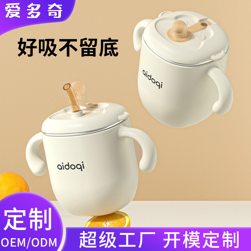 婴幼儿童防呛吸管奶瓶保温家用外出便携保温杯316不锈钢学饮杯