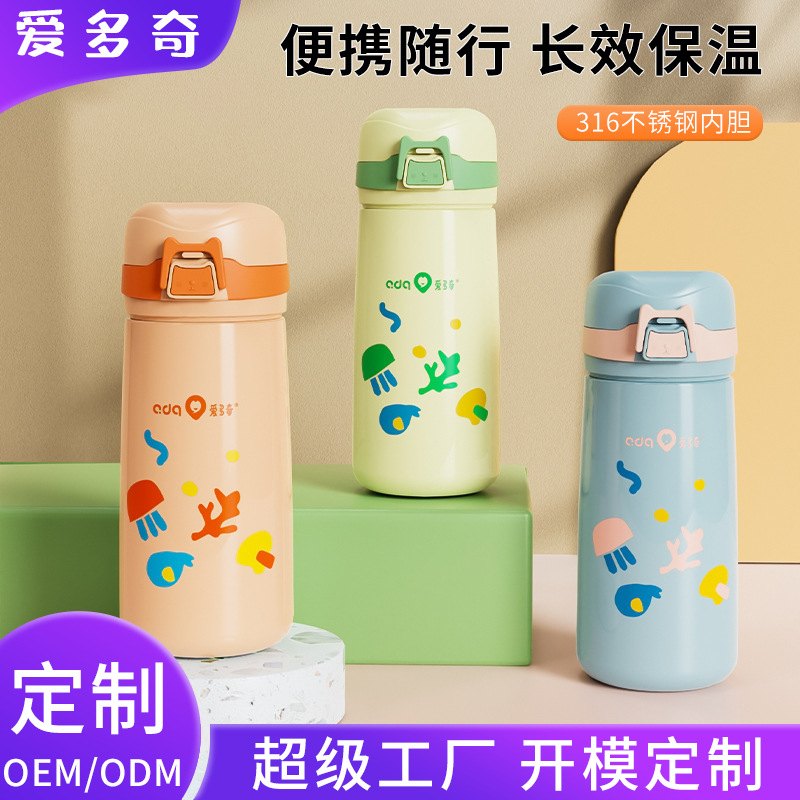 愛多奇子供用保温カップ、二重飲み口ストローカップ、316ステンレス製子供用直飲み水筒、学生通学専用