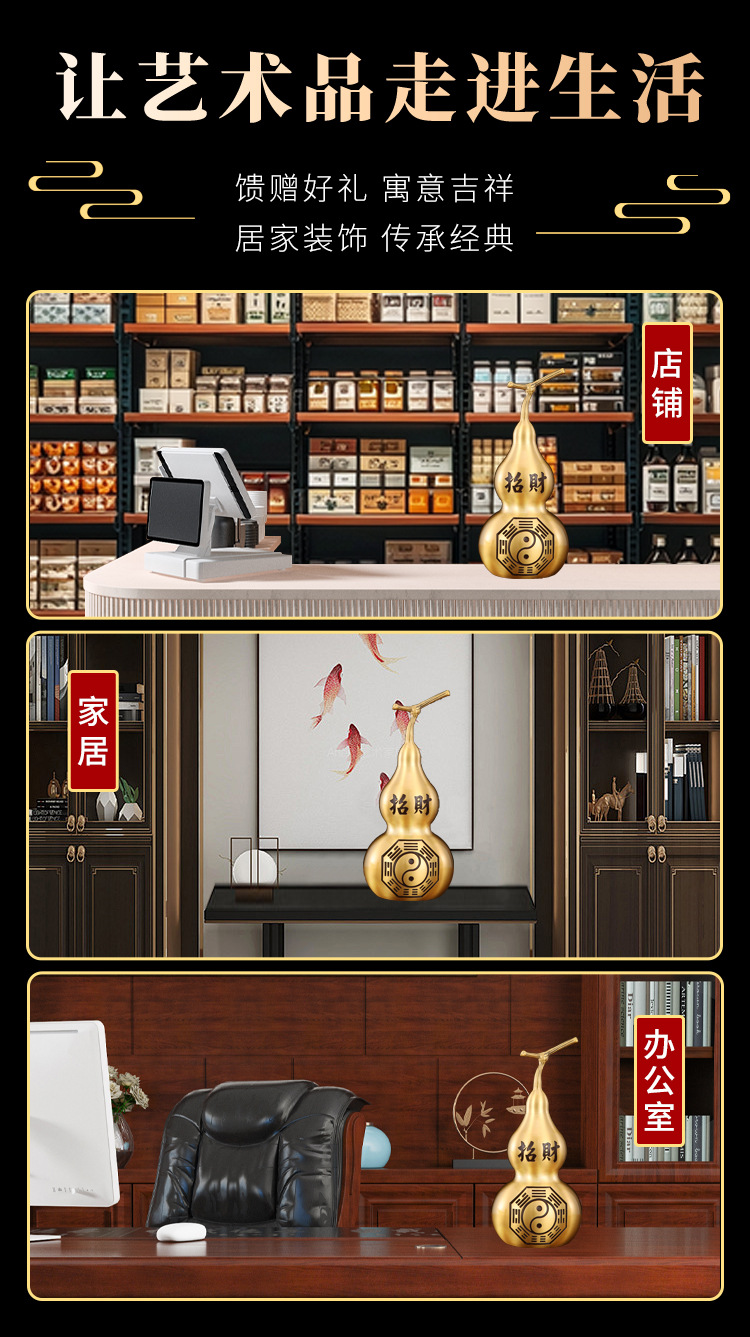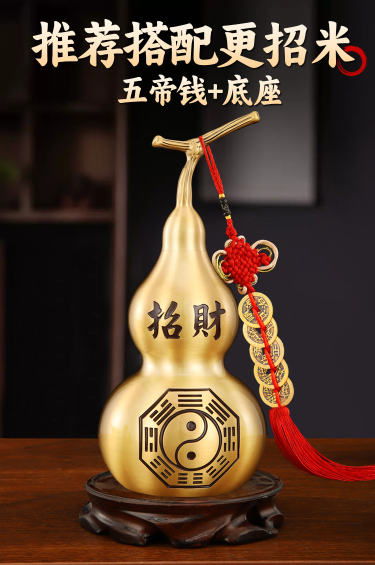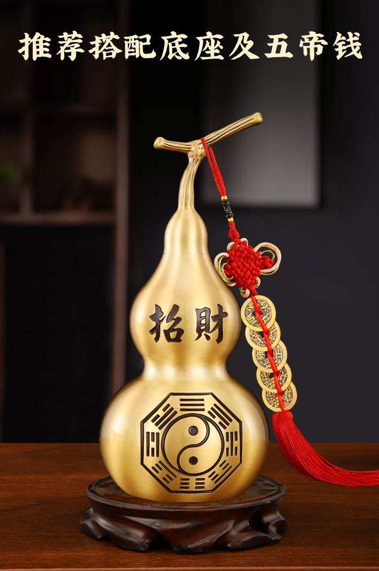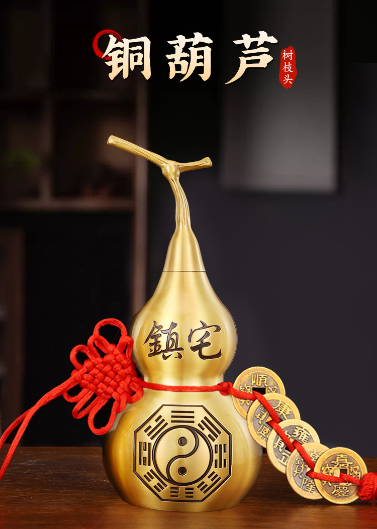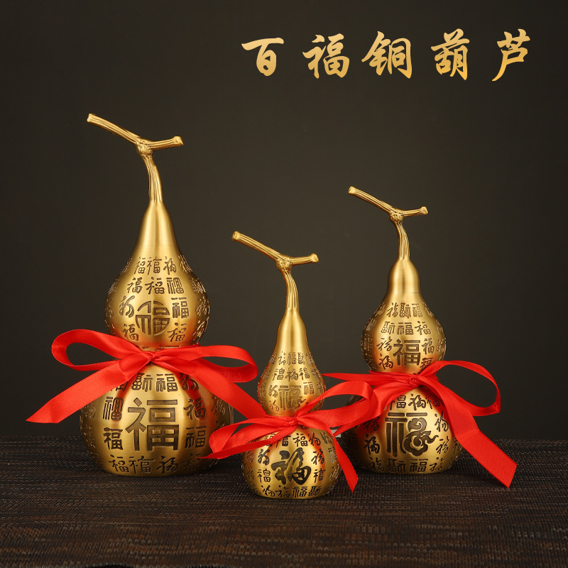 銅製のひょうたん飾り、玄関に置くひょうたん、リビングルームの飾り、黄銅製の百福ひょうたん、金属工芸品メーカー卸売