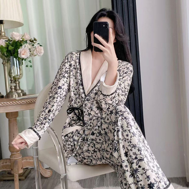 ベルベットパジャマ女性セクシー春秋モデルネット赤風高級感長袖冬女性ホームウェアセット