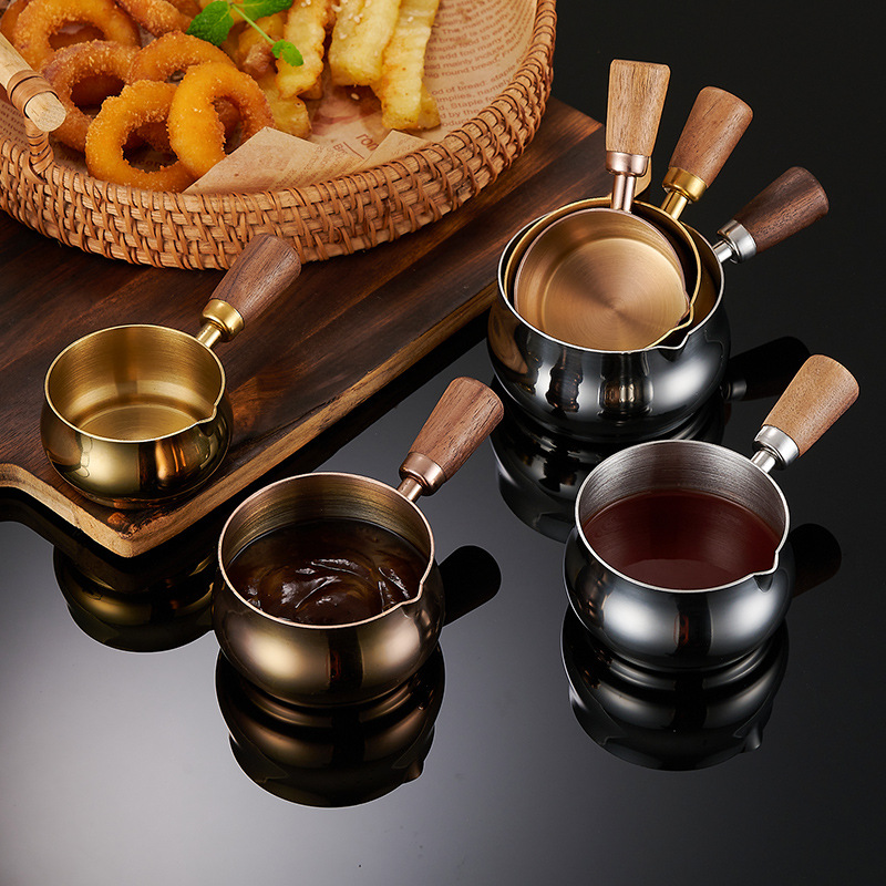 ステンレスソースカップ木柄ソースカップステーキソースカップハンドル付きソースカップ洋食トマトサラダソース