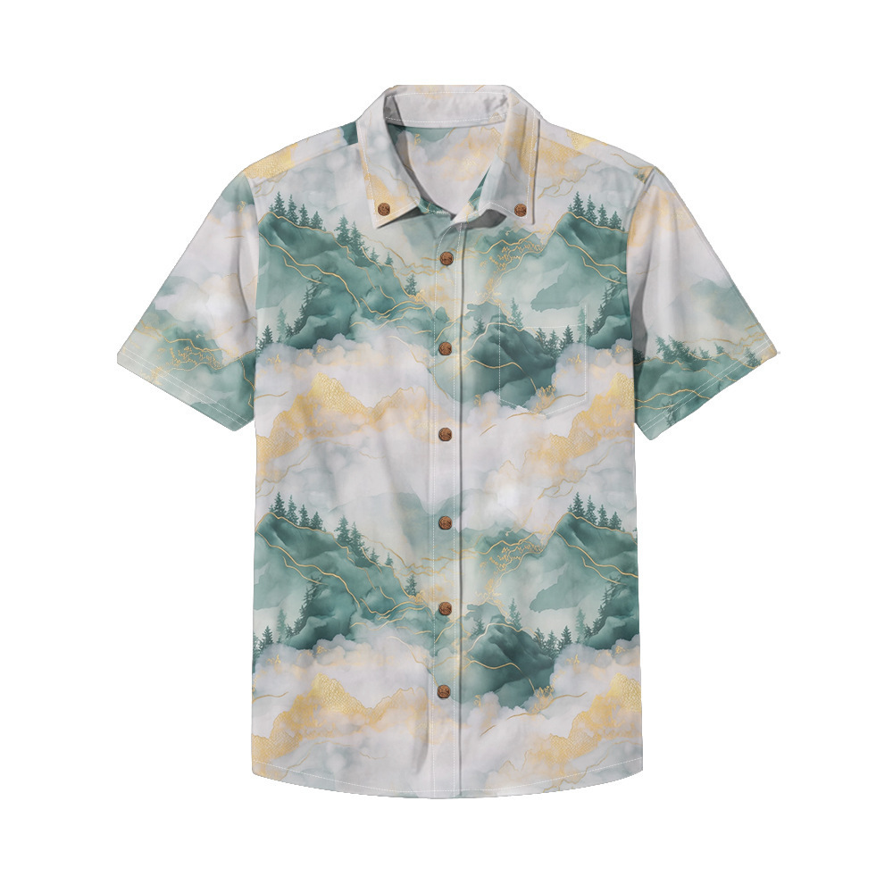 新しいクロスボーダー独立ステーションアマゾンハワイメンズカジュアル半袖ライナーマウンテンフラワーピュアコットンストレートインジェクション