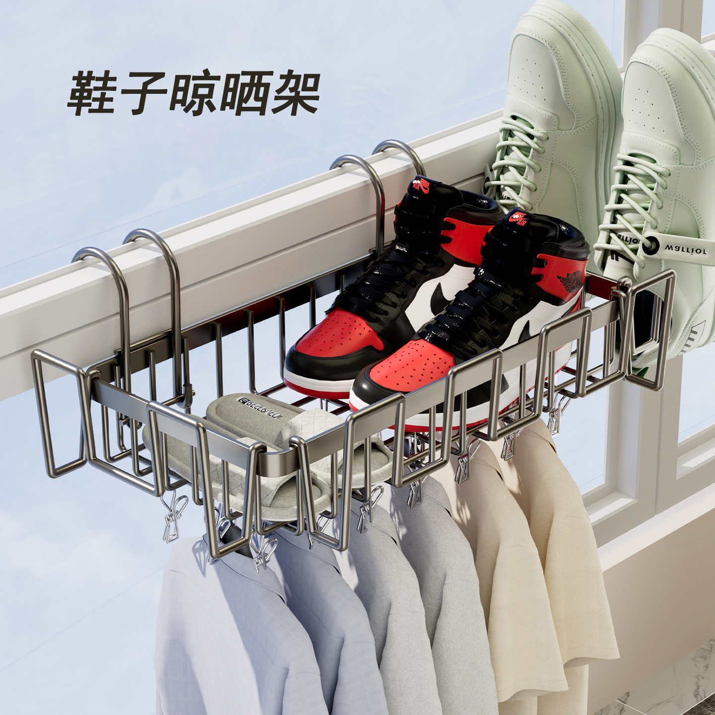 阳台晾鞋晒鞋子晾晒架袜子多夹窗外晾衣服护栏防盗窗晾晒鞋挂钩架