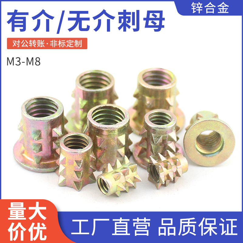 亜鉛合金トゲ埋込ナットトゲ家具ナット帯介/無介トゲm3 m 4m 5m 6m 8