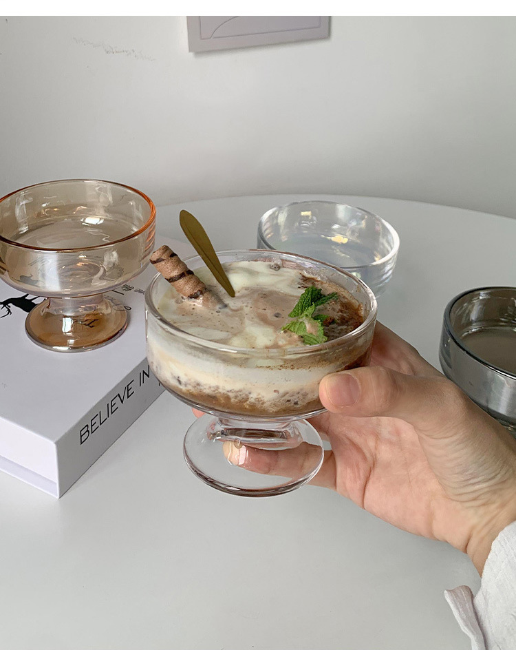 ネットレッドinsアイスクリームカップガラス高足デザートカップ家庭用アイスクリームカップミルク昔カップヨーグルトカップ果物カップ
