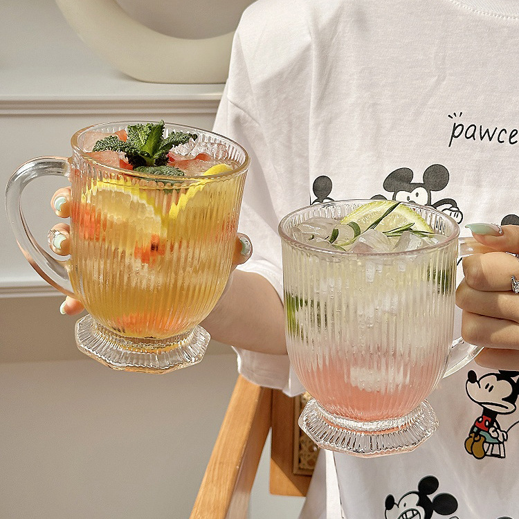 インスタ风ゴロストライプ大口杯グラスミルクティー业务用大容量ジュースカップハンドル付ドリンクカップ