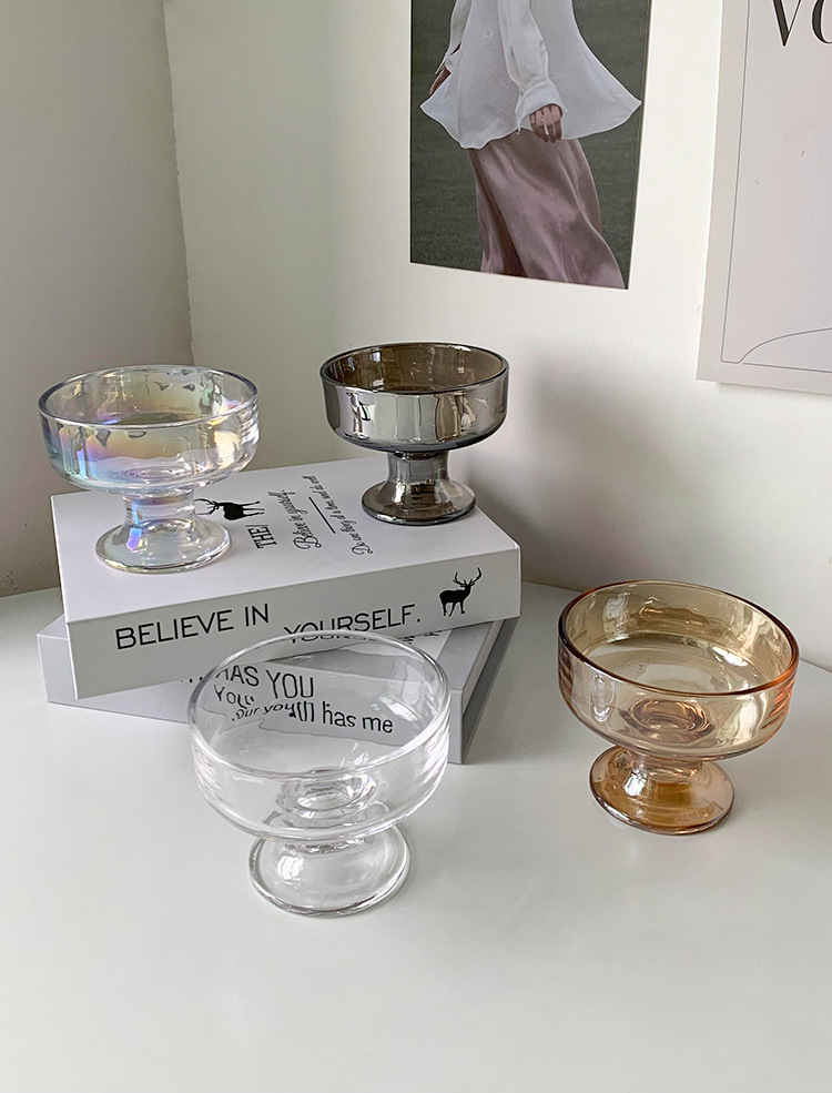 Ins風アイスクリームボールカップガラスヨーグルトボウル高足デザートボウル高顔値アイスクリームミルク昔プリンムースカップ