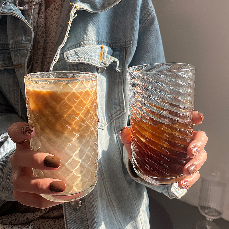 エンボスねじガラスカップins風アメリカ風コーヒーカップソーダ気泡水飲料ジュース牛乳朝食カップ