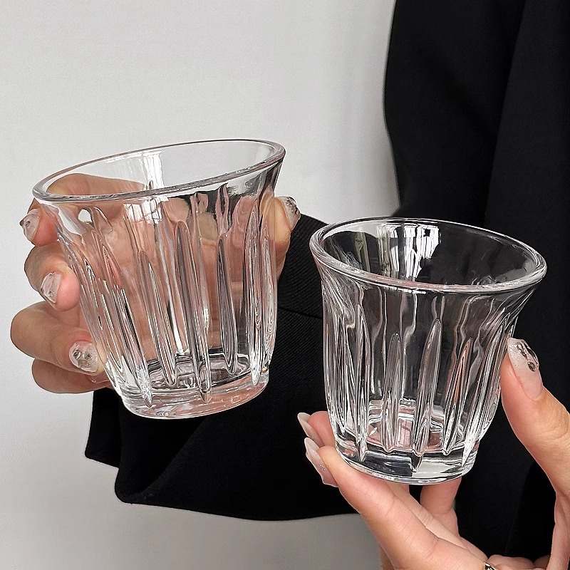 卸売クリエイティブストライプコーヒーカップ、ガラス製アロマカップ、ガラス製ワインカップ、ラテカップ、アメリカンコーヒー高級カップ