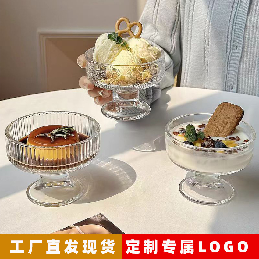ins简约玻璃甜品碗酸奶杯高脚雪糕碗杯冰淇淋杯子冰激凌杯酸奶杯