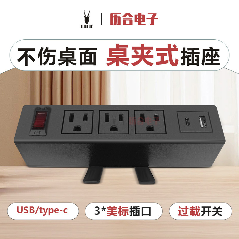 桌面粘夹桌式插座办公桌书桌台面多功能排插家用usb插板电竞桌插