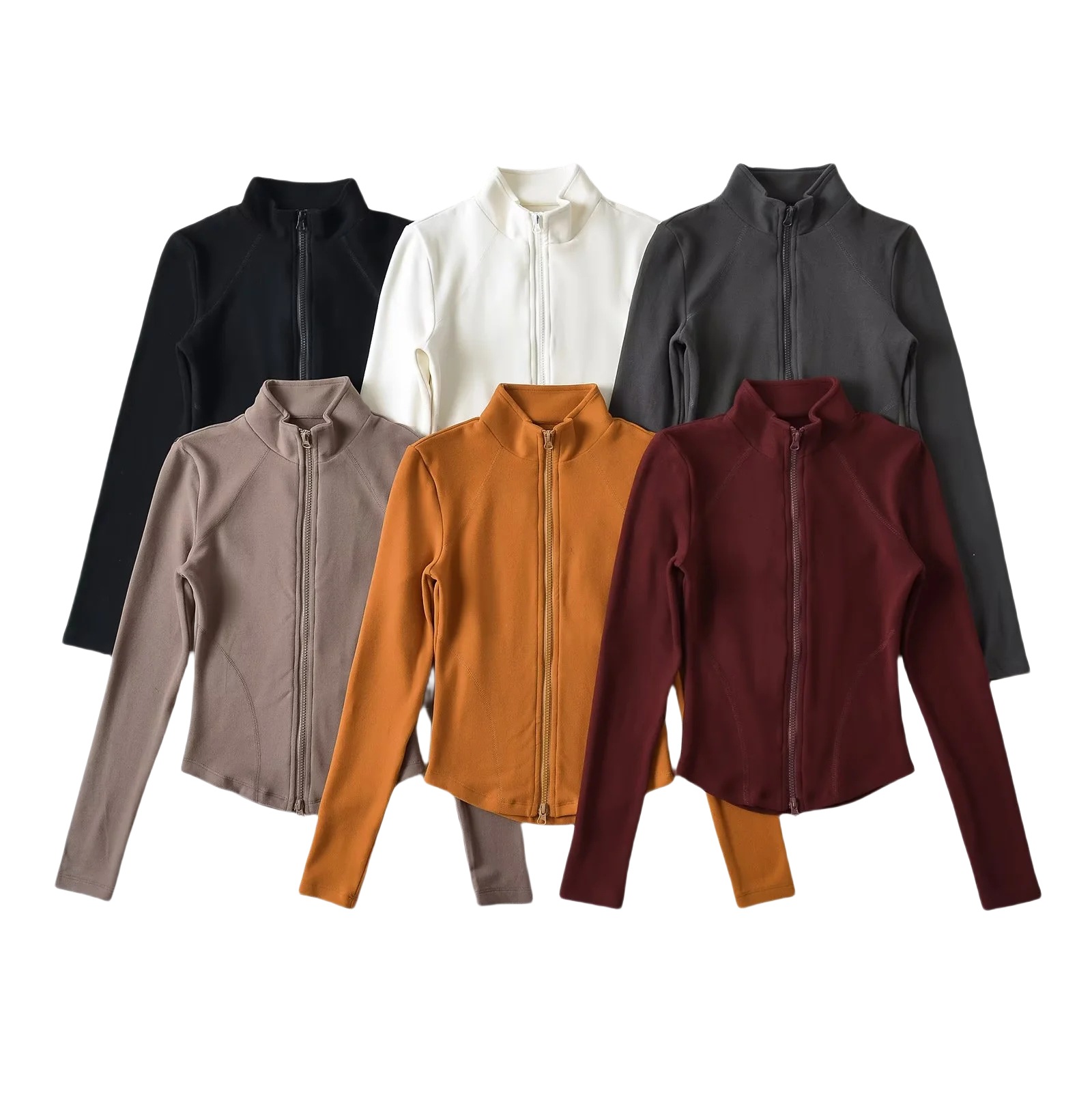 秋の新型アメリカ式ファスナーのガードルとヨガの上着、豪毛のダブルファスナーは腰の弾力性の長袖のカーディガンのtシャツを収めます。