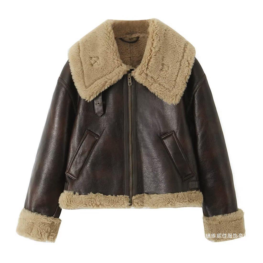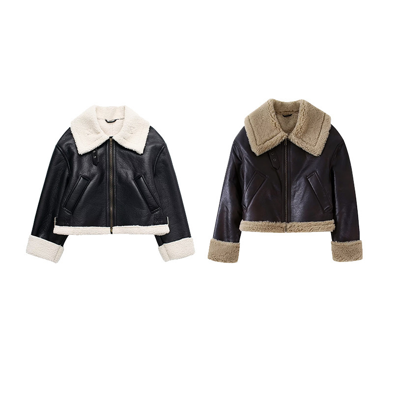 ZAアマゾンクロスボーダー婦人服卸売欧米女性用両面ショートジャケットゆるい長袖機関車毛皮コート