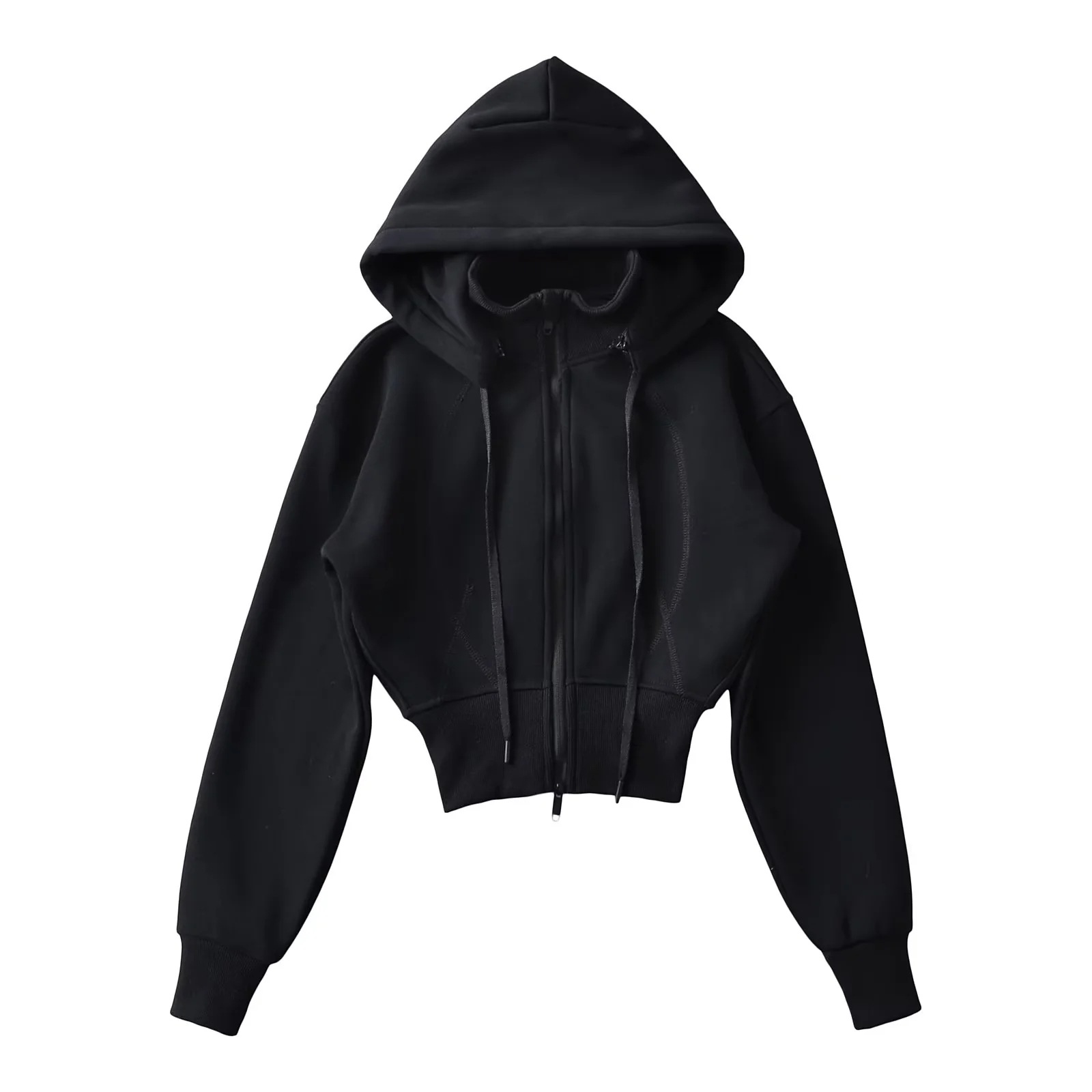 欧米風の新型婦人服の両面布と帽子の短い衛衣の縫い目の飾りのラッパのズボンの衛のズボンの3641843