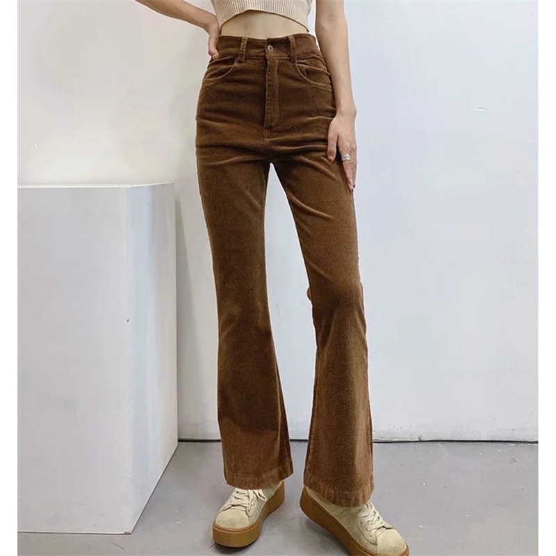 2024秋冬新作ハイウエストコーデュロイフレアパンツレディースパンツ、ヨーロッパとアメリカンスタイルのスリムカジュアルパンツ、ネットセレブパンツ