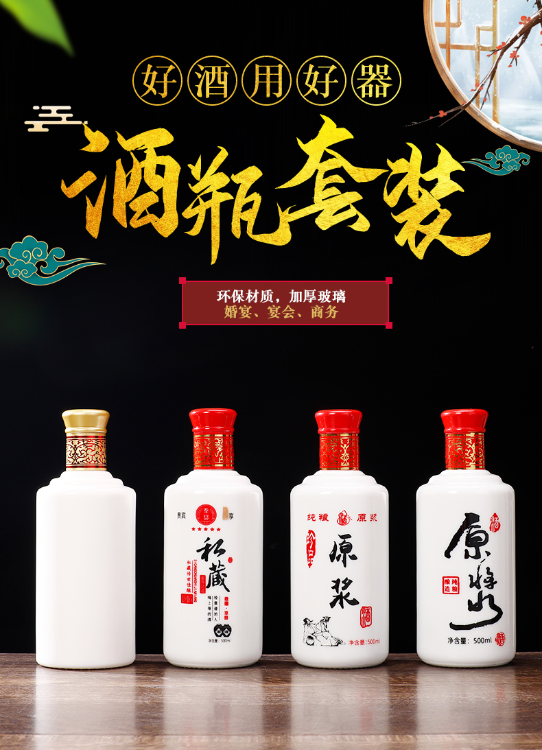 5zv7卸売り白酒瓶空酒瓶乳白酒瓶1斤白磁器ガラス酒瓶自醸造原パルプ包装空瓶