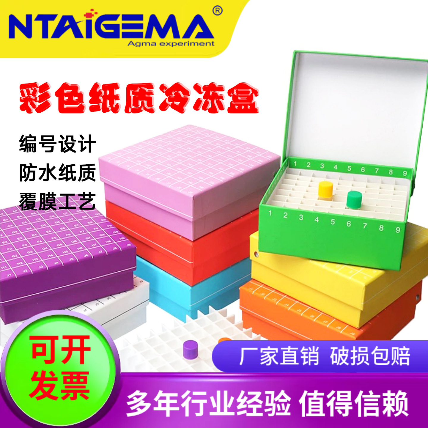 纸质冷冻盒81格100格 翻盖冻存盒 连盖81孔纸盒防水1.8/2ml超低温