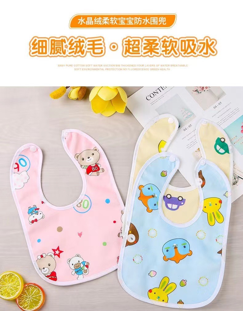 ベビー用品0-3歳水晶絨毛u型防水ボタンよだれタオル