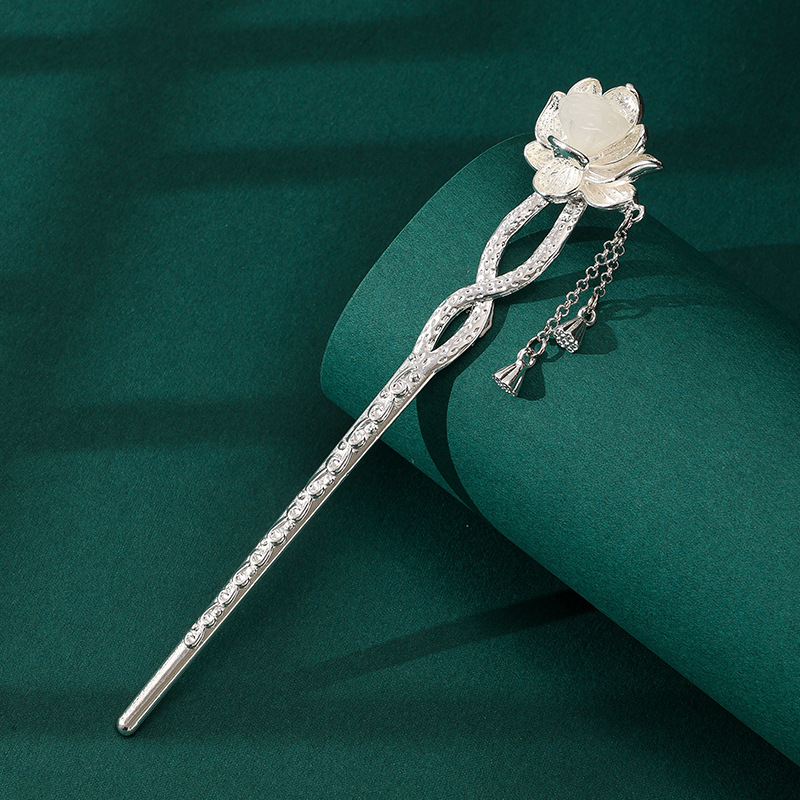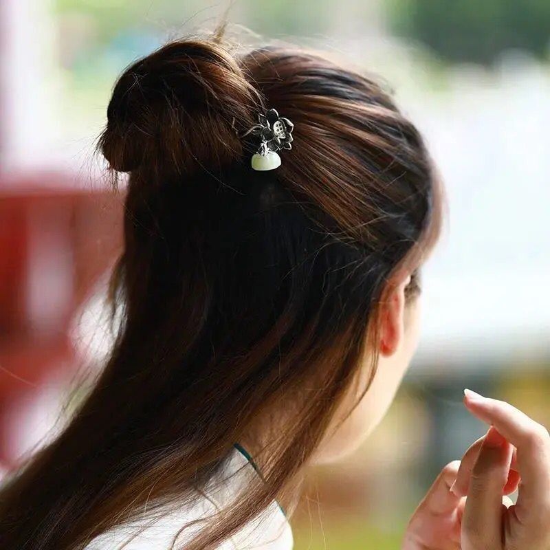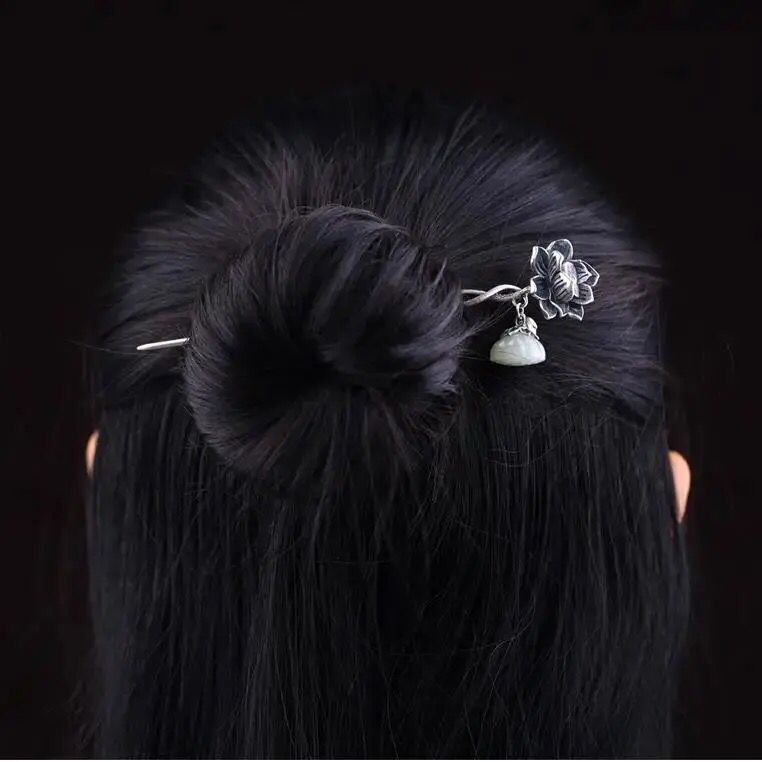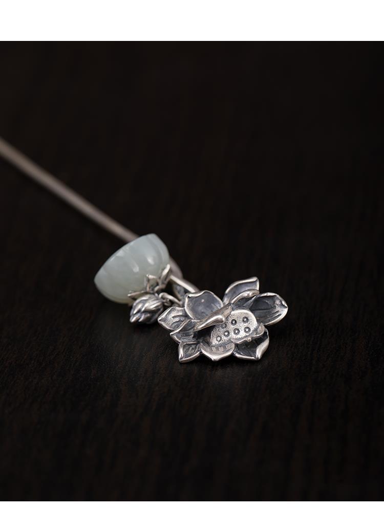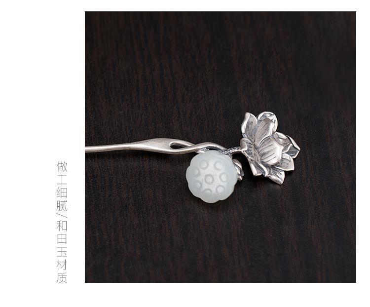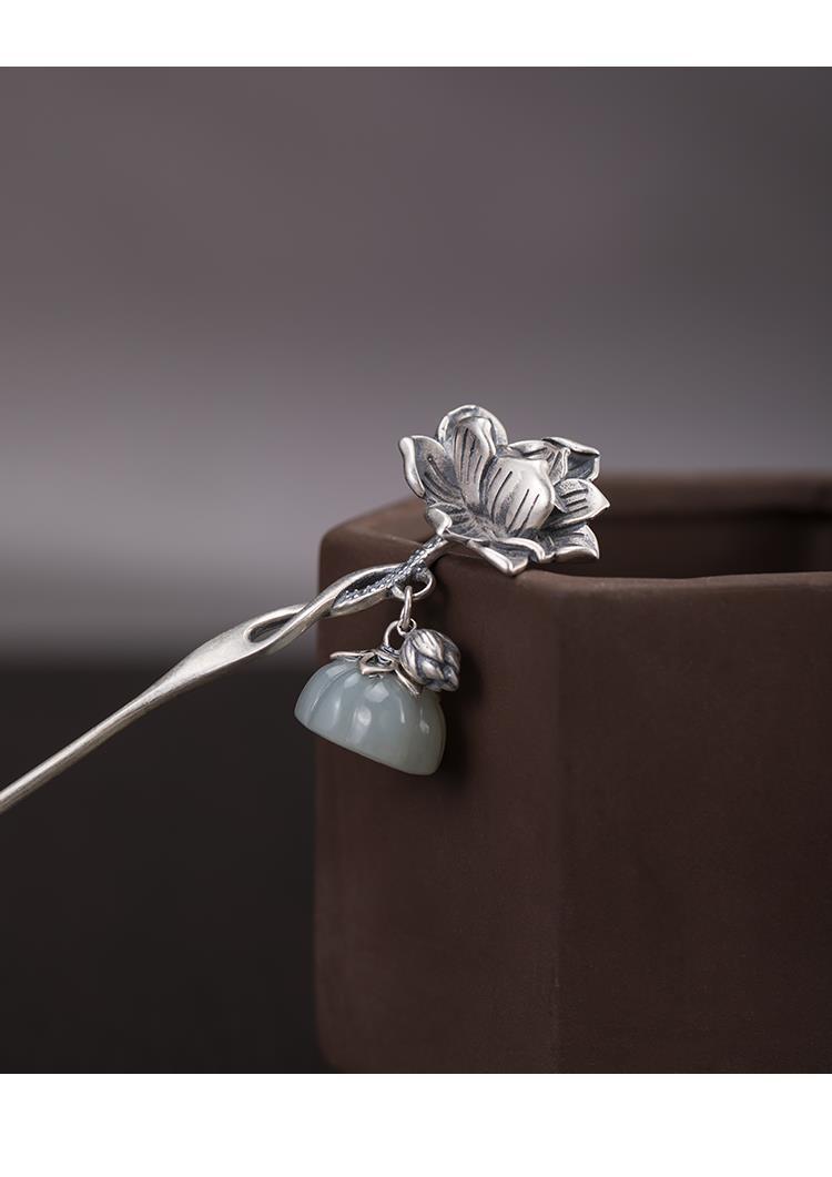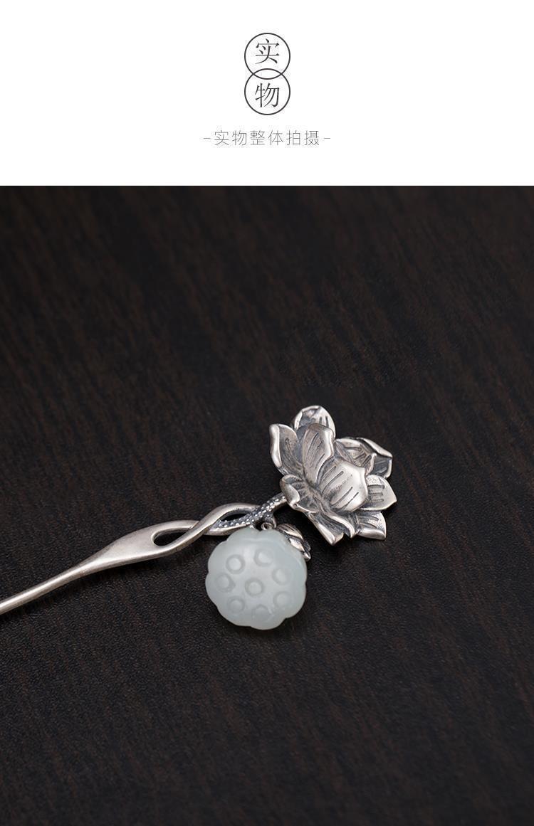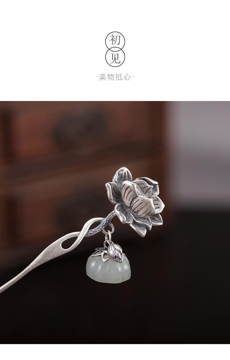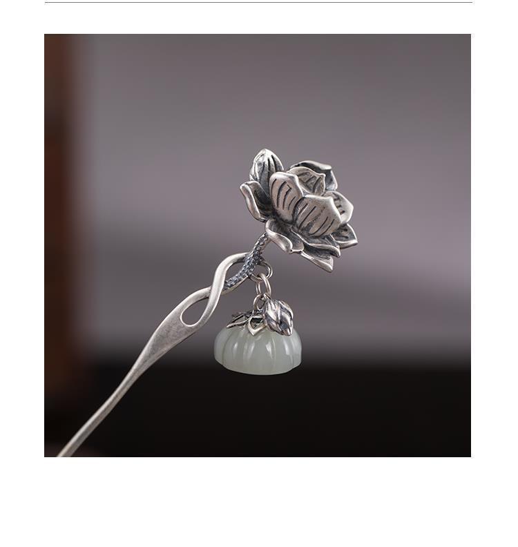 エスニックスタイル蓮のヘアピン女性のための銀メッキ s925 賀天翡翠漢服古代スタイルロッキングアップ蓮のヘアピンヘアピン