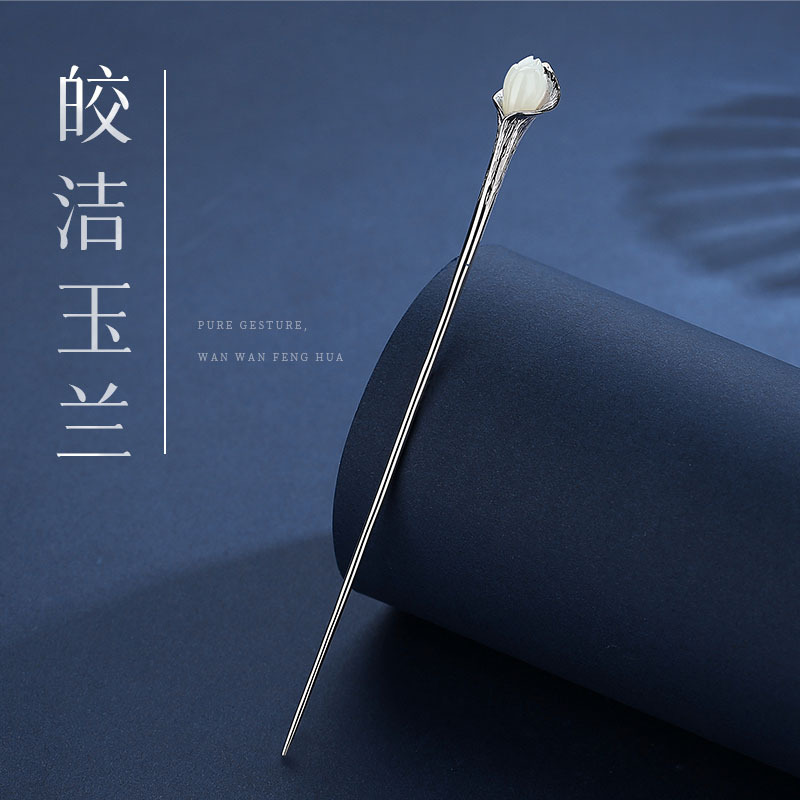 S925銀メッキ和田玉蘭漢服頭飾り古風盤髪銀髪ヘアピン足取りヘアピンヘアピンを母に送る