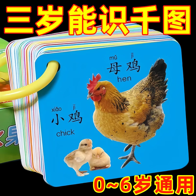 动物卡片早教启蒙书认知婴幼儿宝宝儿童益智识字看图识物玩具水果