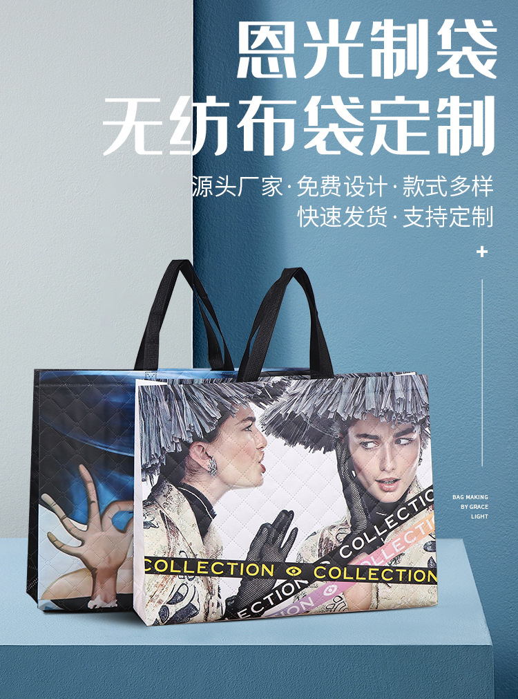 現物卸売り不織布横型折り畳み覇膜デパート広告宣伝服装店ショッピング手提げ袋ギフトバッグ