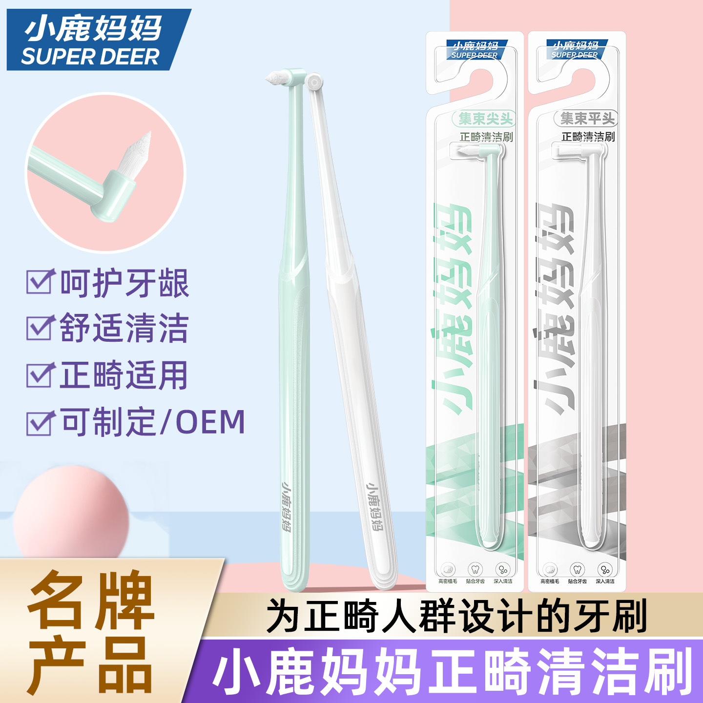 小鹿妈妈牙刷 单束清洁刷正畸人群适用间隙刷软毛齿间刷 工厂直销