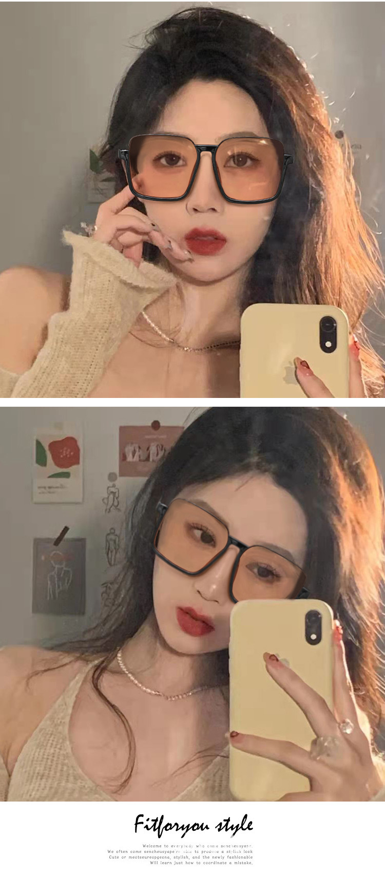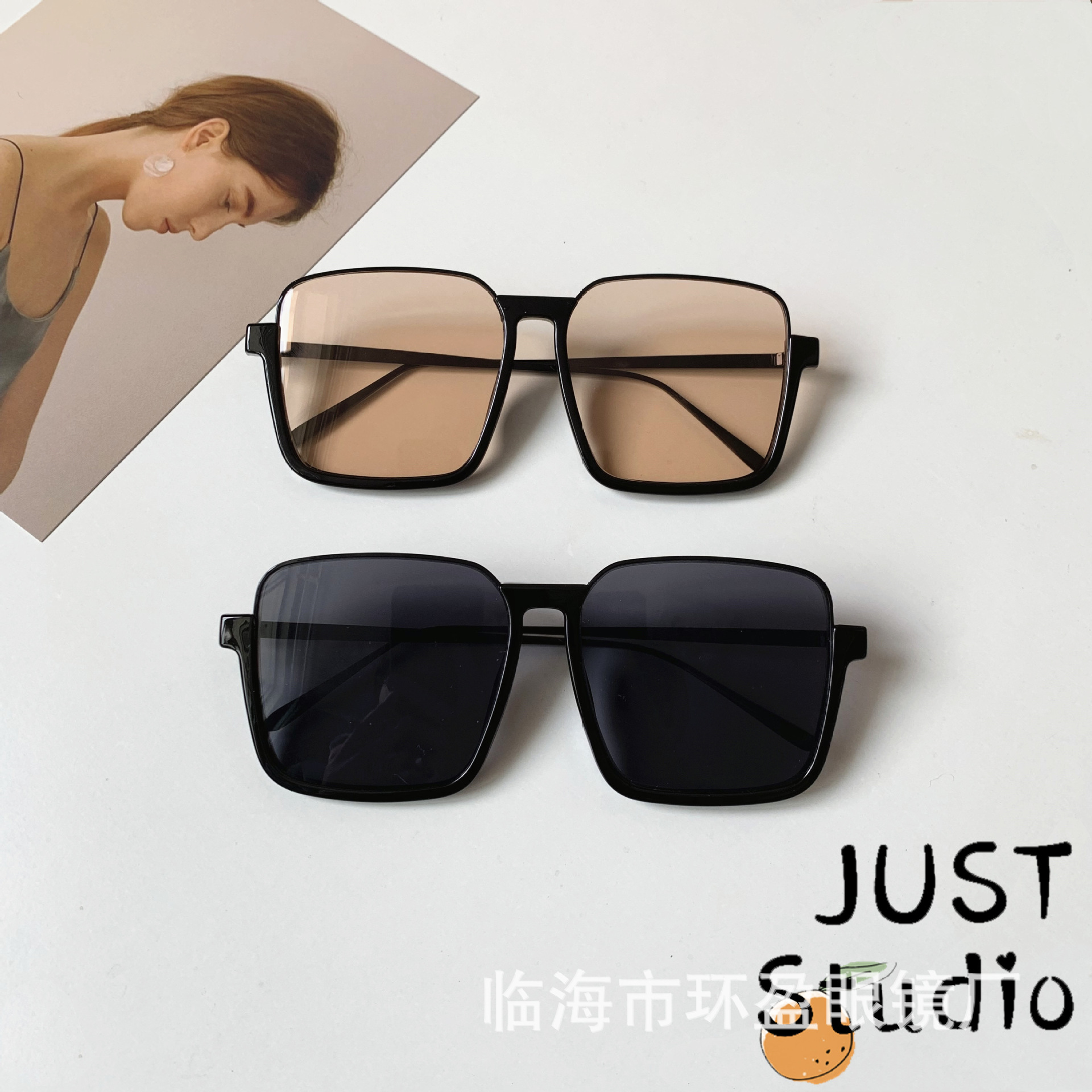Jennie同型米白色サングラス韓国版枠サングラスins高級感紫外線防止サングラス