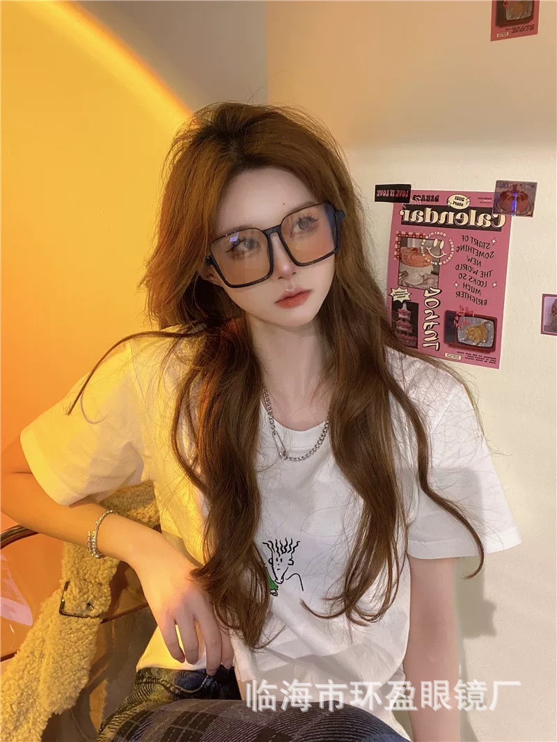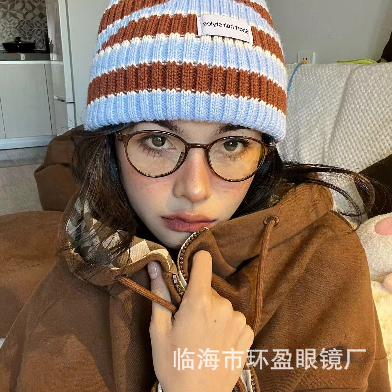 韓国風小紅書レトロメガネ冷茶色ブルーライトカット小顔超軽量ノーメイク近視女性ins風フレーム