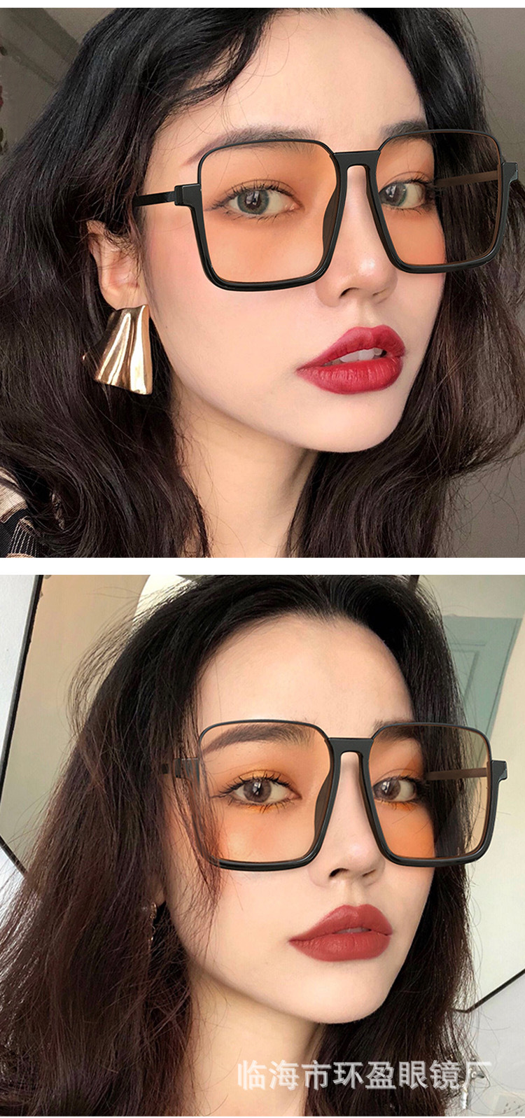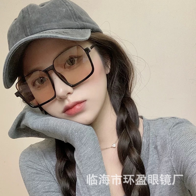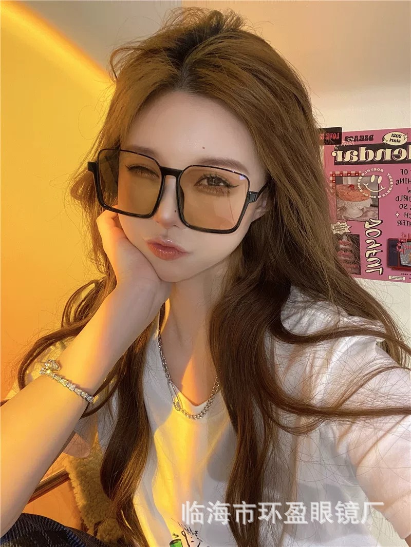 ブルーレイ防止ネット赤レトロ超大型フレーム黒枠眼鏡女性大円顔下半フレーム眼鏡フレーム平光鏡