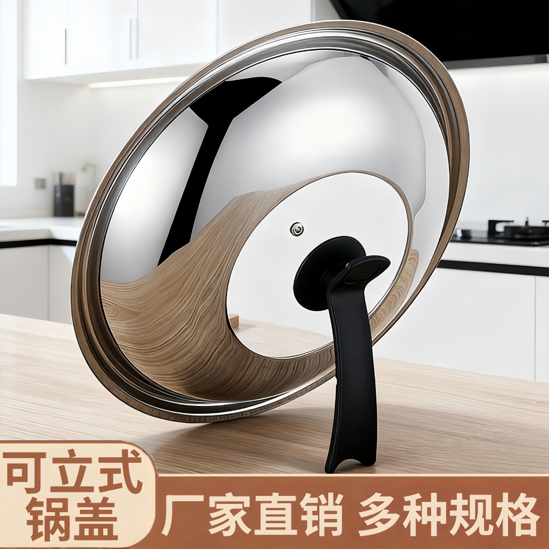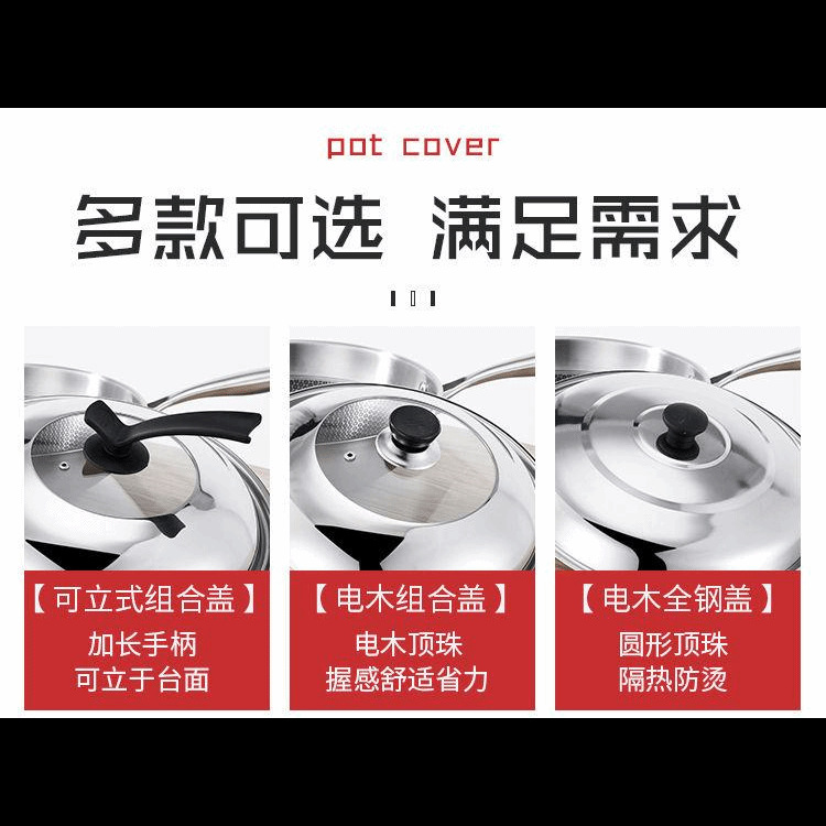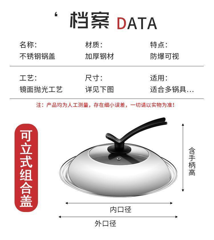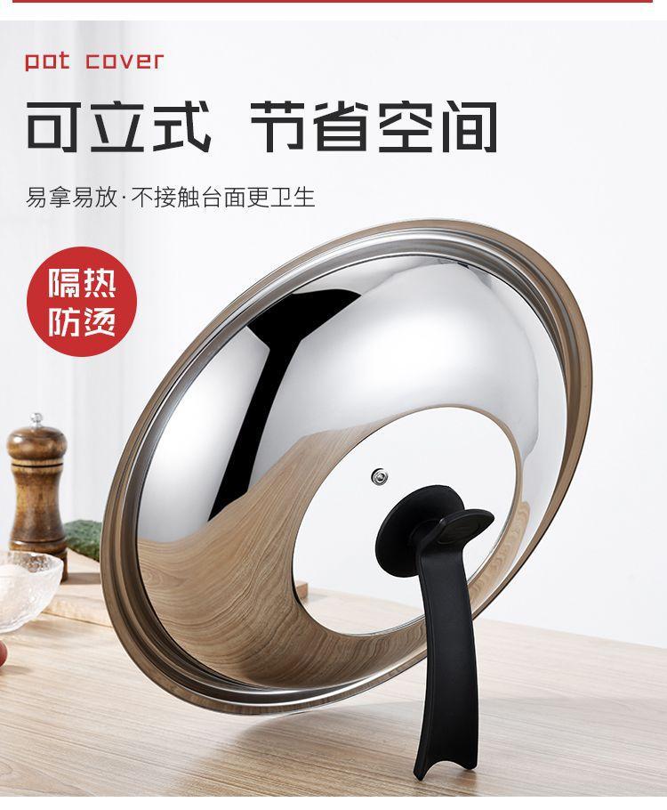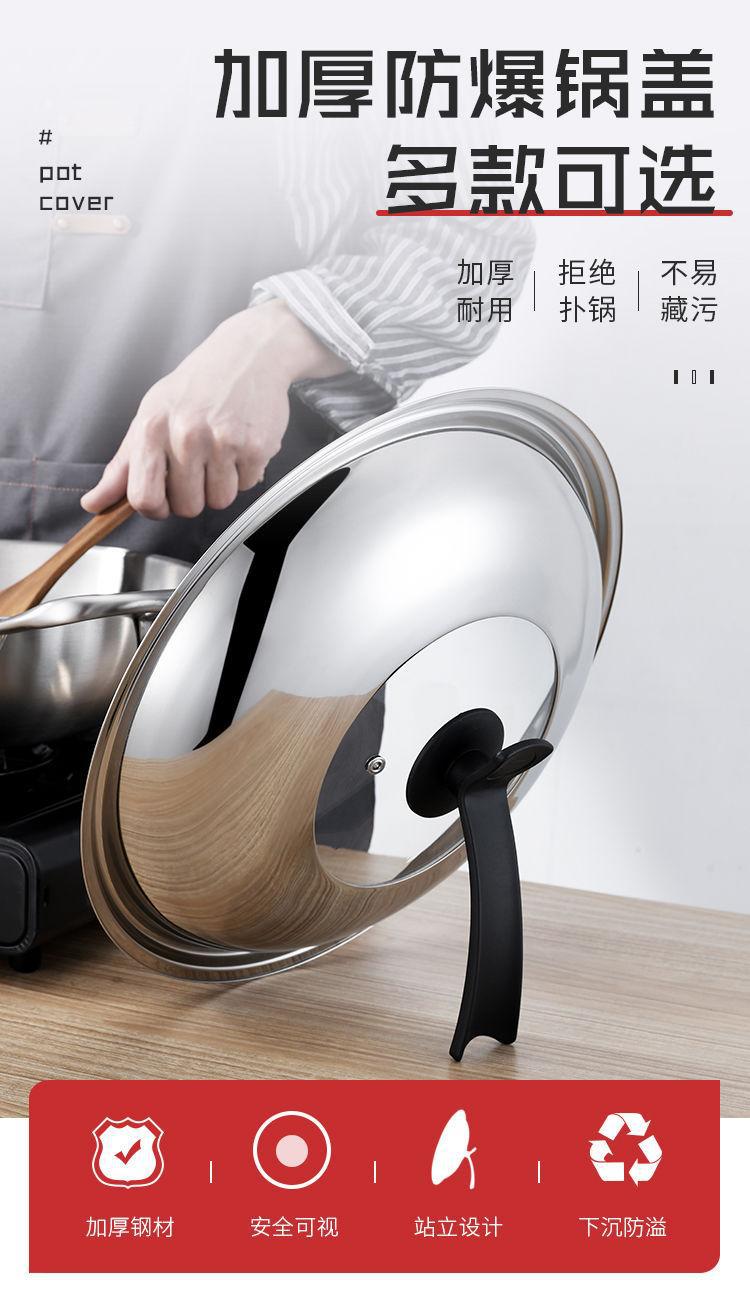 304不锈钢通用锅盖把手顶帽炒锅盖子可立视玻璃盖耐高温炒菜锅盖