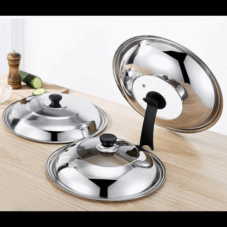 304ステンレスの鍋の蓋の家庭用の鍋の万能の通用の蓋の厚い炒め物の鉄鍋の丸い型の耐熱ガラスの蓋