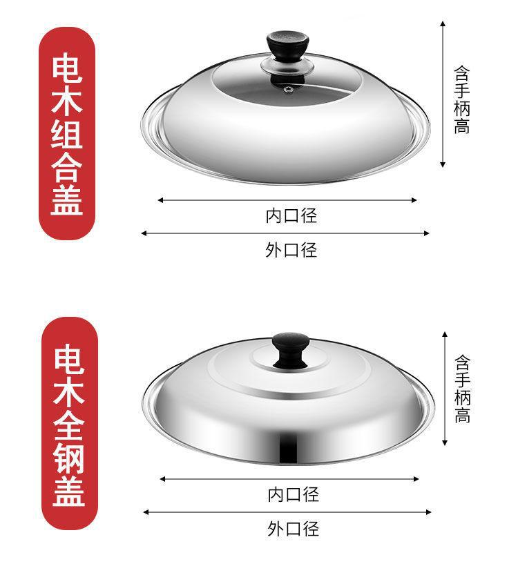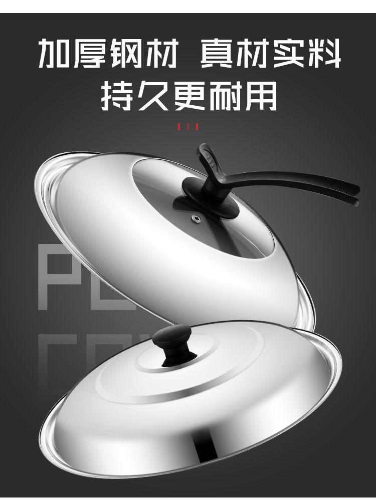 特厚不锈钢锅盖通用炒锅盖家用炒菜锅盖子大铁锅盖蒸锅透明玻璃盖