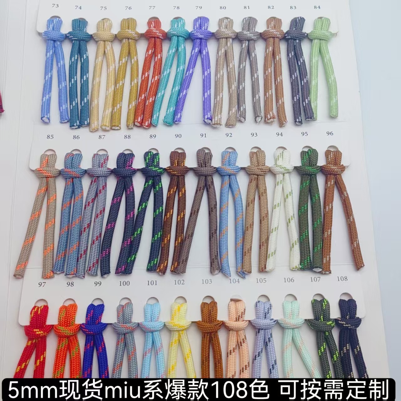 5MM彩色涤纶包芯跳点圆绳现货108色高品质服装帽裤绳编织伞绳