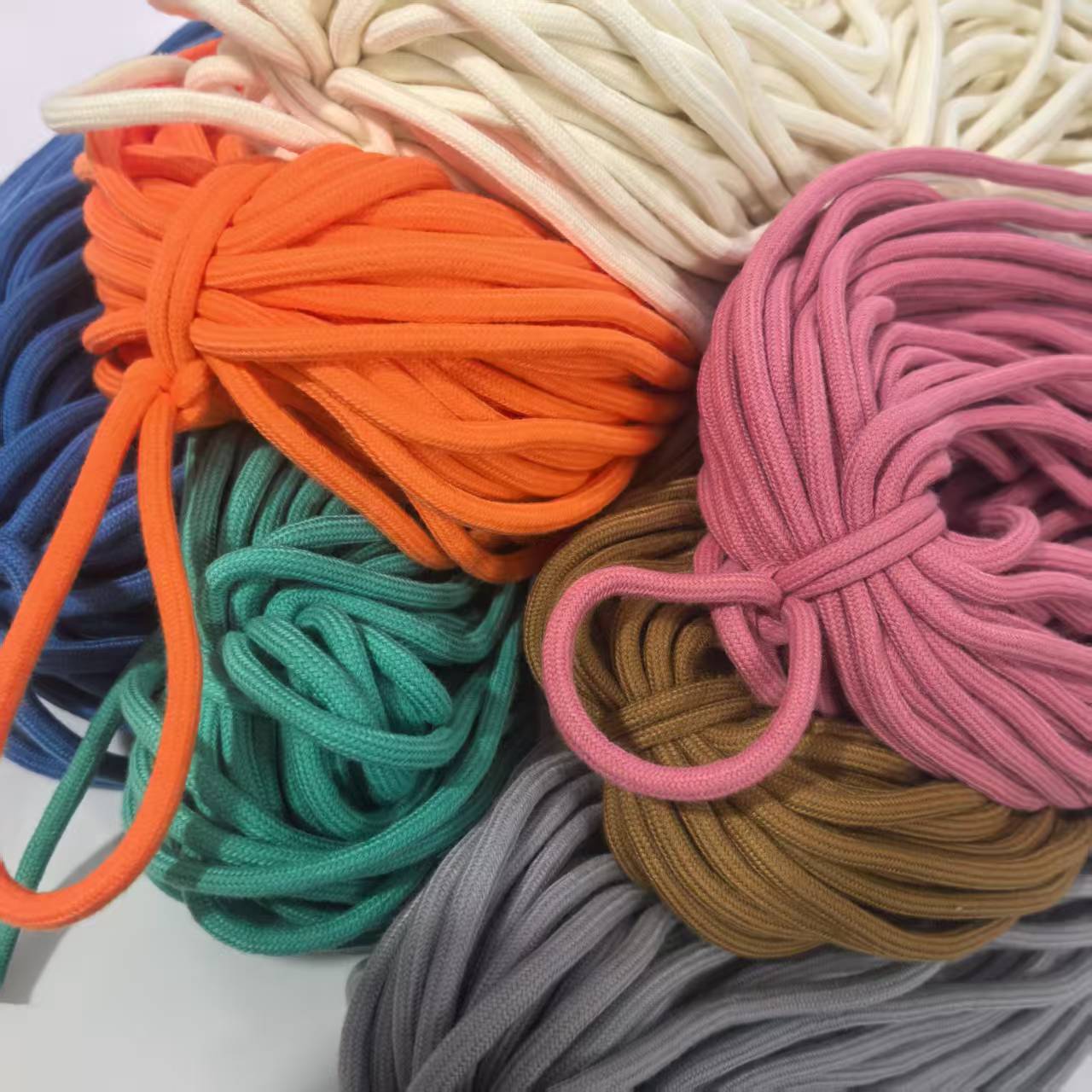 40定6mmポリエステル綿混紡芯入り丸紐、パンツウエスト紐、スポーツウェア帽子紐、ヘアロープ、吊り下げ紐、カラフルな紐