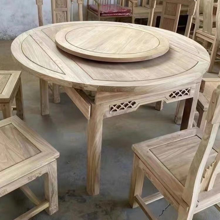 実木食卓北方老楡木白作胚素地円卓模造古明清家具新中国式食事テーブル卸売り