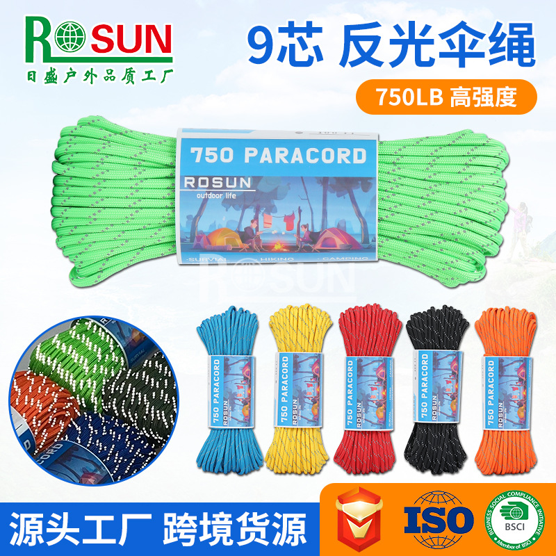 9 コアナイロン反射パラコードクロスボーダー 750 ポンド高強度屋外編組キャンプパラコード 9 コアパラコード