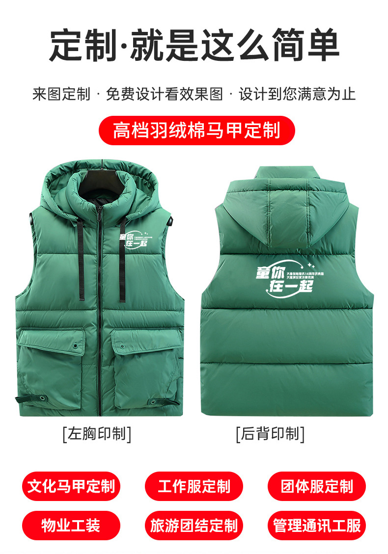 MK1025 取り外し可能フード付きダウンコットンベスト