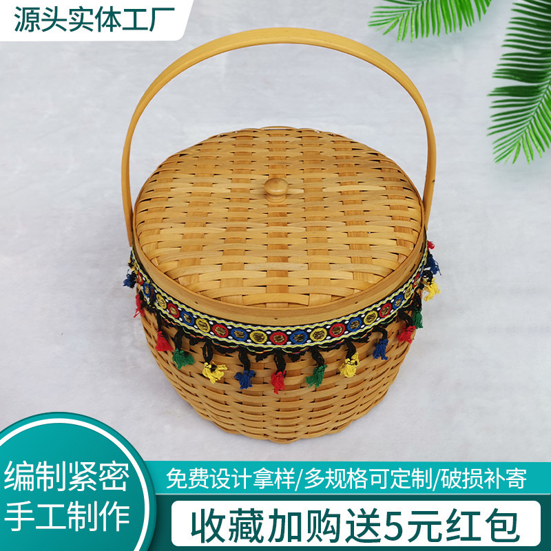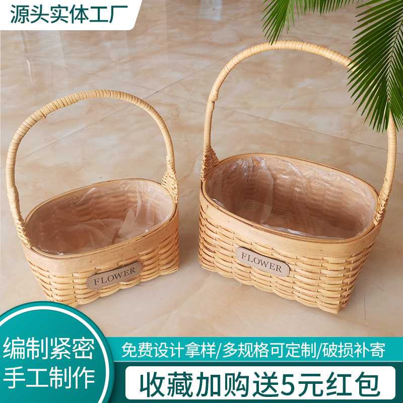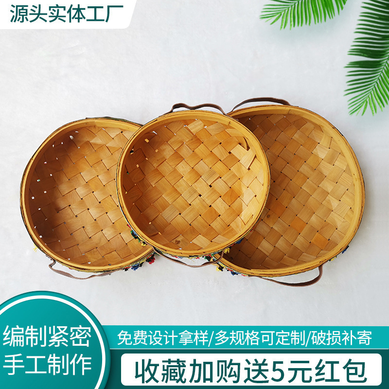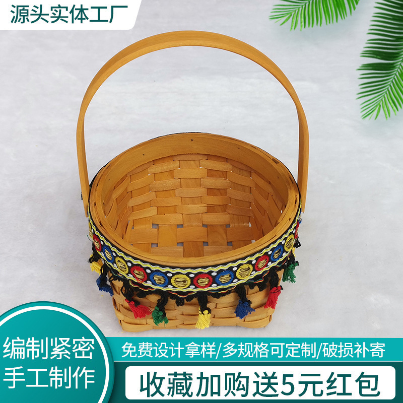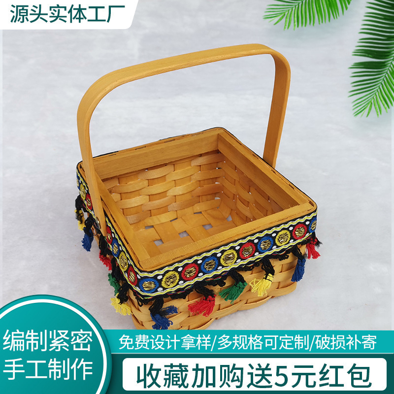 収納箱を編む日本式の木片の果物のかごのピクニックのパンの手提げかごの家庭用の間食の貯蔵かごは簡単です。