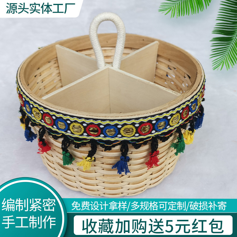 現物木片編みバスケットデスクトップ収納スナック卵ブルーレトロ布芸シンプル円形リビング装飾収納