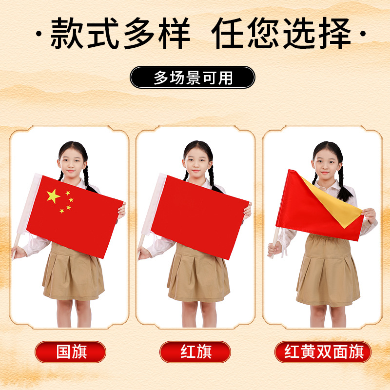 手摇五星红旗演出手持舞蹈带杆红黄双面旗幼儿园运动会表演道具