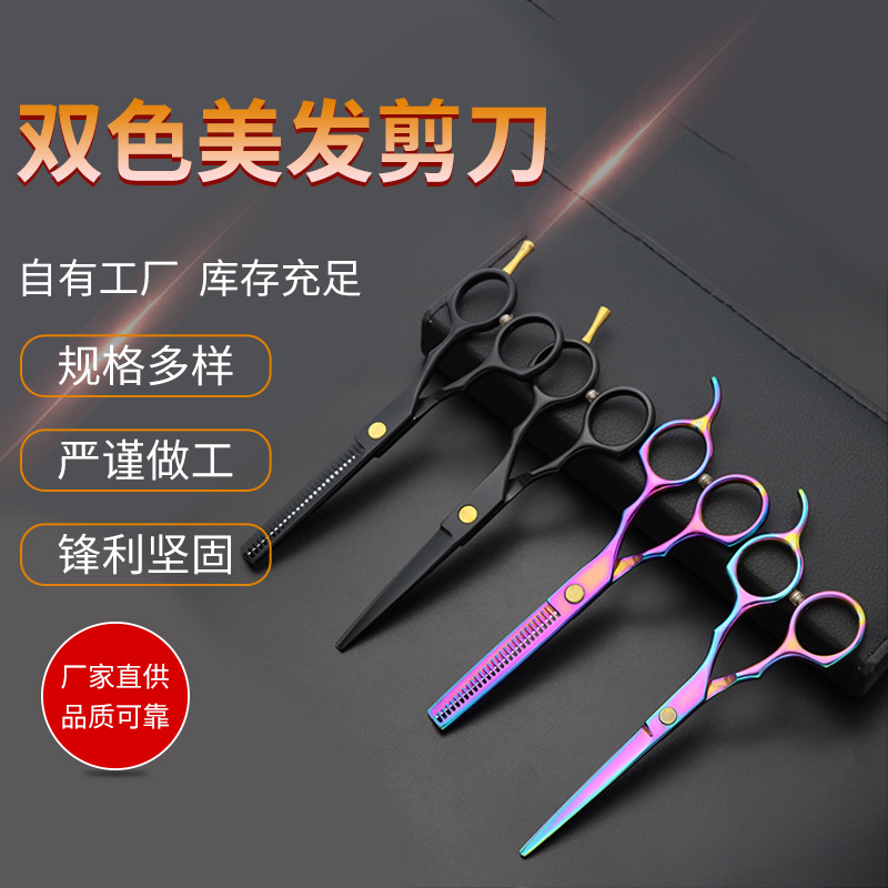 ファッションの電気めっきの黒青のまぶしい色の美髪のはさみの理髪は切って歯を切って美容の美容の美容のメーカーの現物を切って卸売りします。