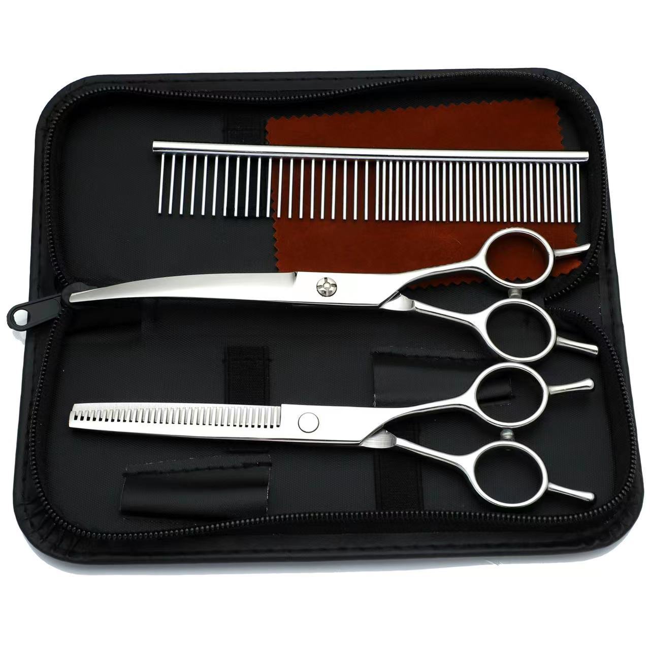 ドイツ製工芸品 7inch ペット用両用美容はさみセット 薄刃はさみと平刃はさみの組み合わせ卸売