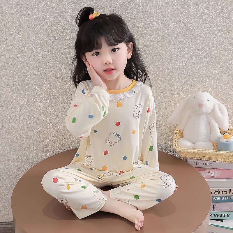 子供秋服と長ズボン、モーダル女児肌着セット、長袖ズボン、春秋服、中型、大型子供用ホームウェア、パジャマ
