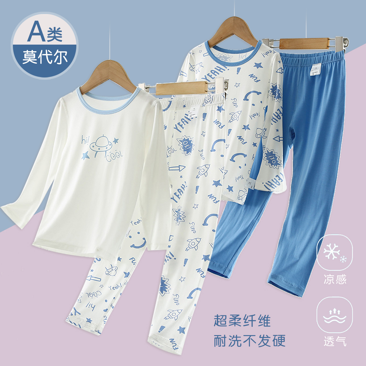 儿童莫代尔家居服男童女童秋衣秋裤宝宝薄款长袖睡衣套装春秋夏款