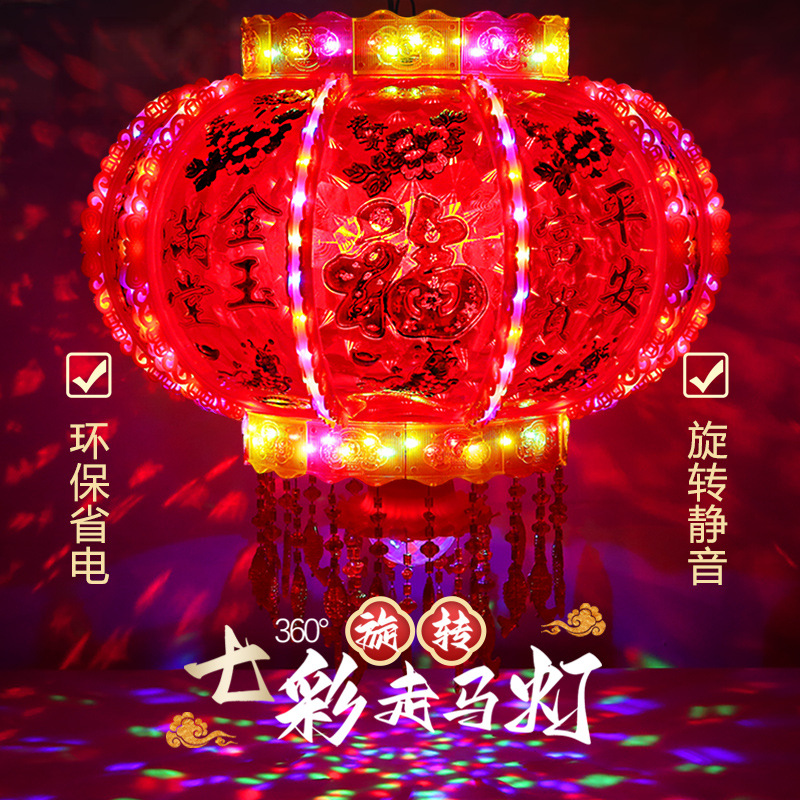 新款大门口炫彩镭射灯笼批发七彩旋转LED走马灯阳台春节新年挂饰